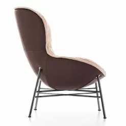 Living Room Armchair In Leather And Fabric With Chromed Base Made In Italy – Litchi