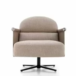 Living Room Armchair In Fabric And Leather With Swivel Base Made In Italy – Liana