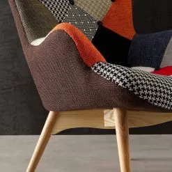 Modern Design Patchwork Armchair In Fabric And Wood – Karin