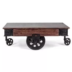 Low Coffee Table In Mango Wood And Steel With Wheels – Minnie