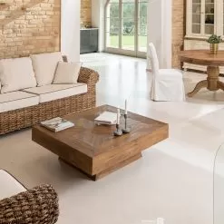 Square Coffee Table In Recycled Tropical Wood – Slide