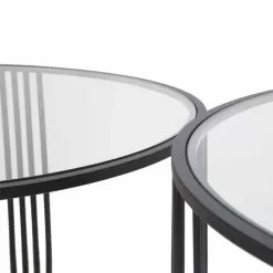 Pair Of Round Coffee Tables In Glass And Iron Modern Design – Ezra