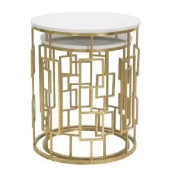 Pair Of Round Golden Coffee Tables With Iron Structure – Marmolo
