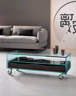 Rectangular Coffee Table In Extraclear Glass With Drawers Made In Italy – Ganzo