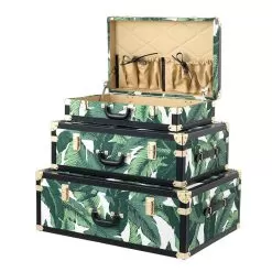 3 Design Trunks In Mdf And Fabric With Black Leather Effect Details – Amazonia