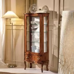 Classic Showcase With Door And White Wooden Drawer Made In Italy – Cheverny