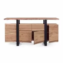 Design Sideboard In Acacia Wood And Iron With 2 Doors And 2 Drawers – Dalya
