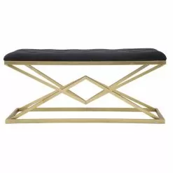 Golden Bench With Iron Structure And Seat Covered In Fabric – Symbol