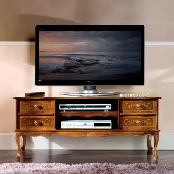 Classic TV Stand In Walnut Wood 4 Drawers Made In Italy – Prince