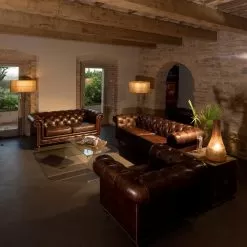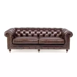 Living room sofa in real dark brown leather , with a classic English style.