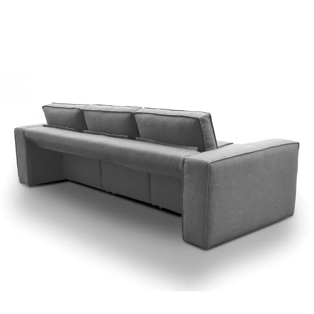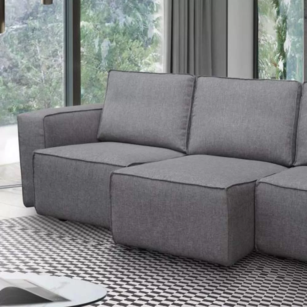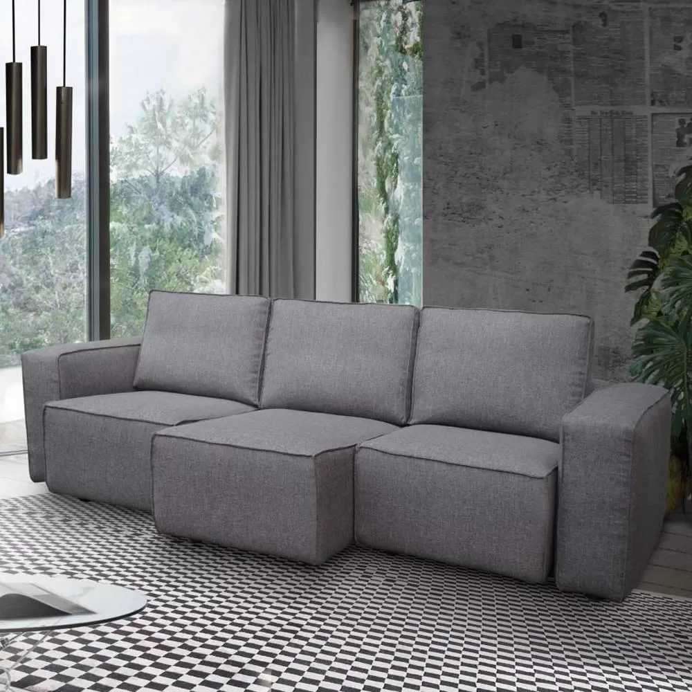 Modern and elegant living room sofa entirely covered in completely removable fabric with structure in fir wood and chipboard complete with polyurethane padding, covered with a protective fabric lining. Its design is characterized by the extendable seats , each of which can be moved independently from the others manually up to about 42 cm forward, so that the useful seat passes from 57 cm to about 95 cm. The seats are also equipped with wheels with anti-scratch rubber to move the sections comfortably. The spring system uses interwoven elastic bands while the seat cushions are made of polyurethane foam and the back cushions are made of mixed down.