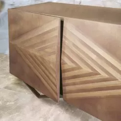 - matt bronze structure, natural birch faceted doors and bronze base;