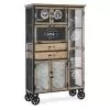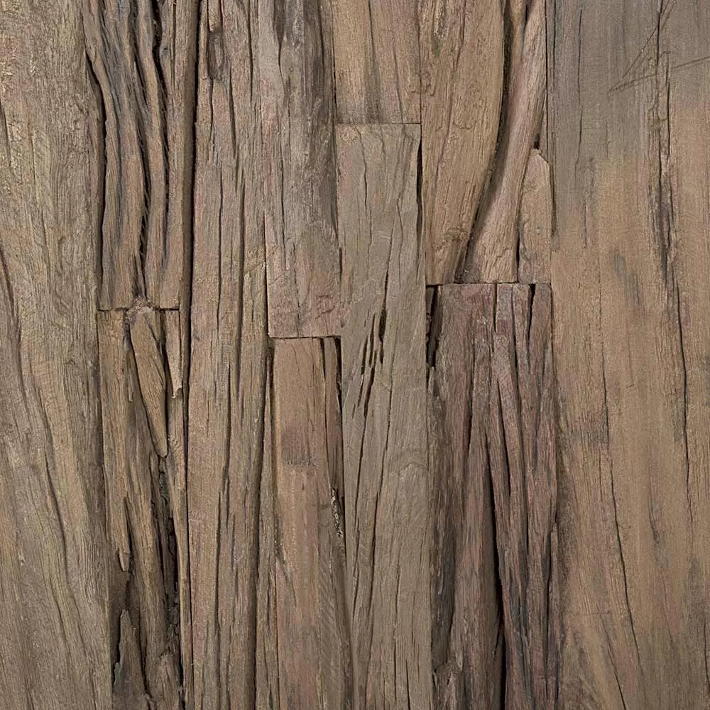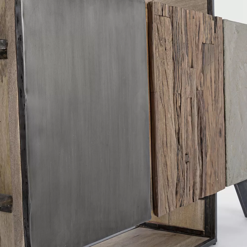 The 3 doors are made of recycled wood , steel sheet and cement fiber finish : the peculiarity of the piece of furniture consists precisely in the presence of wooden dowels of different species and colors.