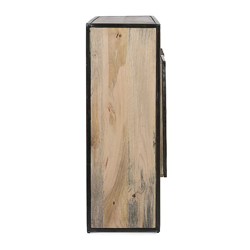 This design sideboard for the living room has a mango wood and steel structure with a plywood back.