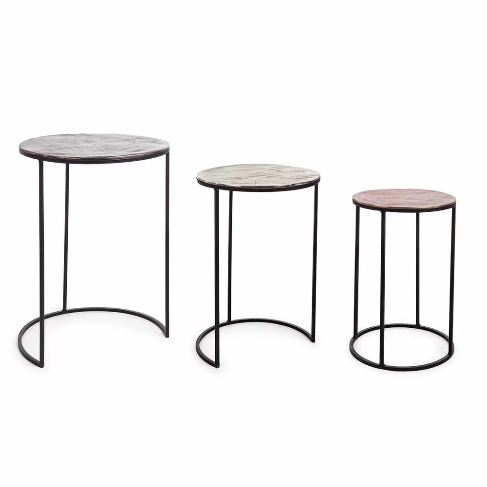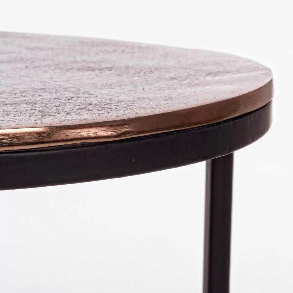 Steel structure painted with epoxy powder. Aluminum top with plated and antiqued finish.