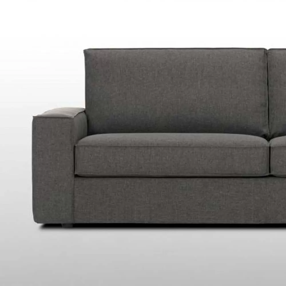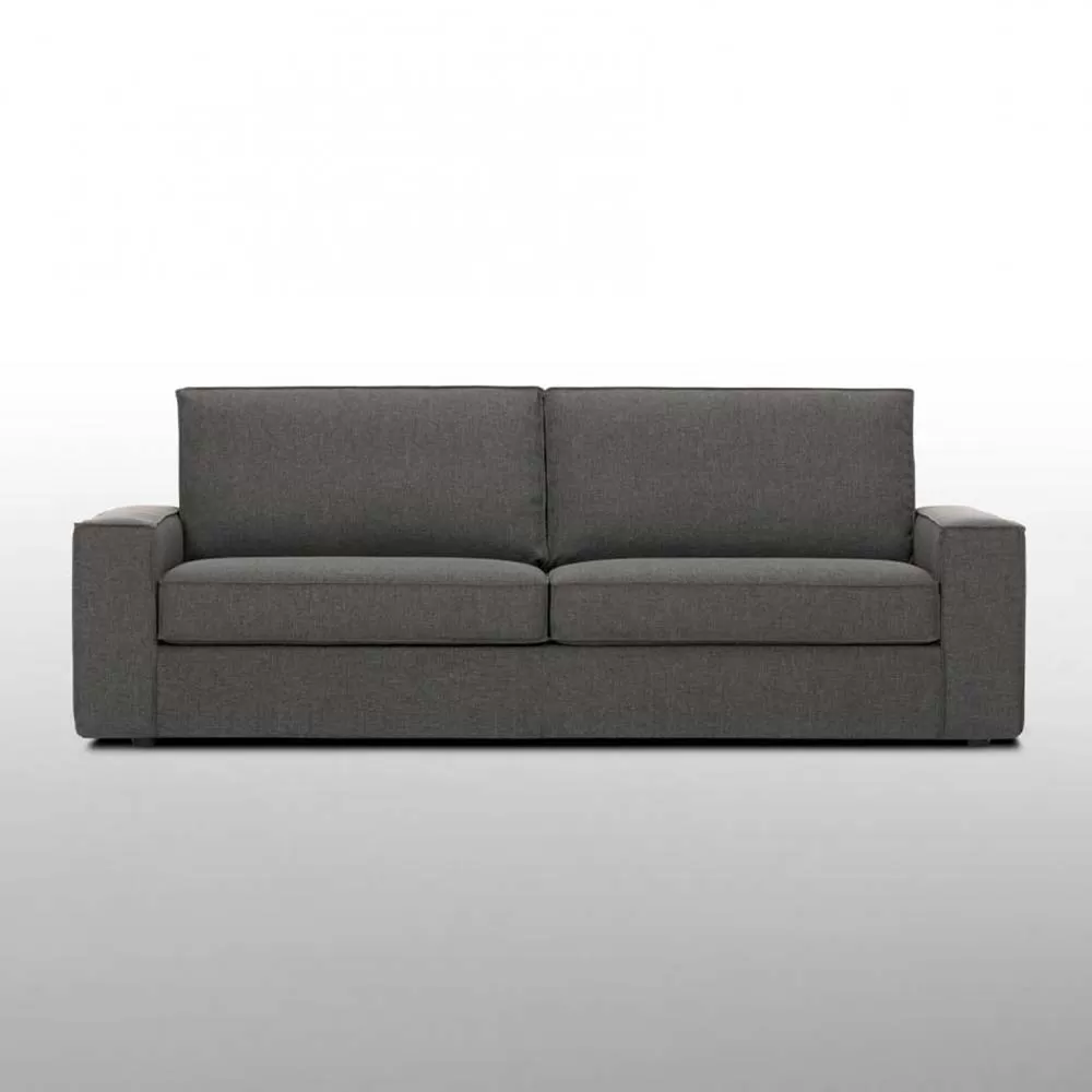 3 seater living room sofa entirely made in Italy with removable cover in anthracite fabric . The structure is in fir wood and chipboard with polyurethane padding, covered with a protective fabric lining. The spring system makes use of interwoven elastic bands, the seat cushions are padded with polyurethane foam while the back cushions are in mixed down.