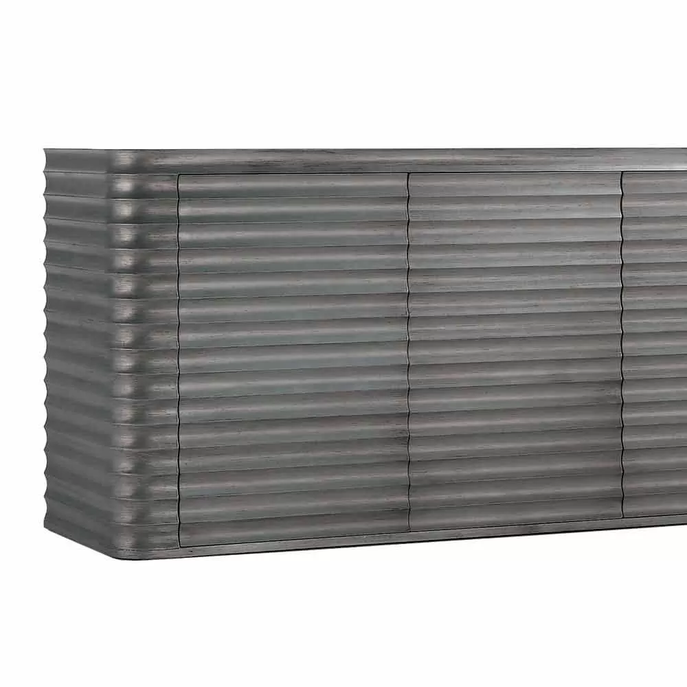 Low cabinet 4 doors with wooden structure machined with numerical control machine. Waved effect. Dana is available in the following finishes: patinated bleached maple or lead. Select the finish you want from the drop-down menu.