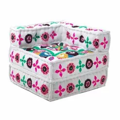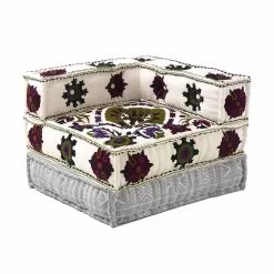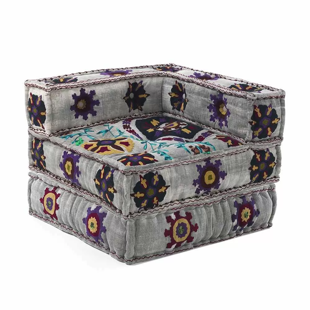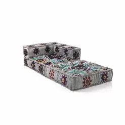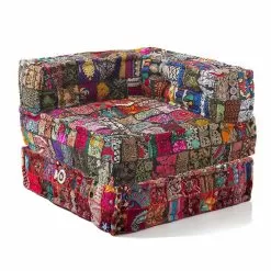 Ethnic design chaise longue armchair in colored patchwork cotton.