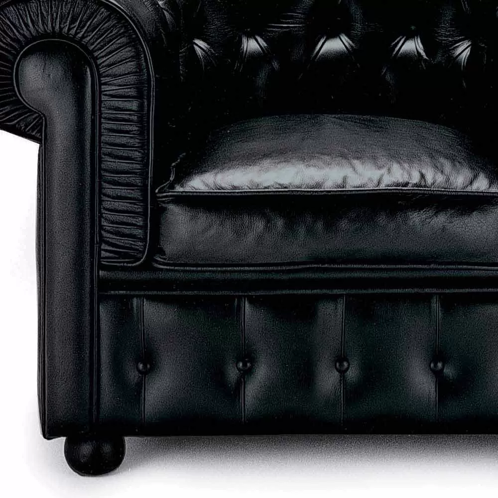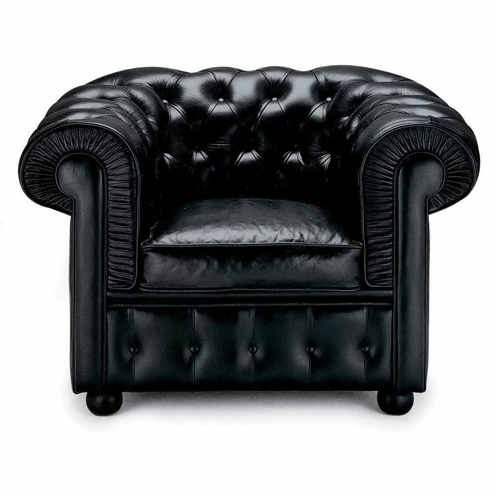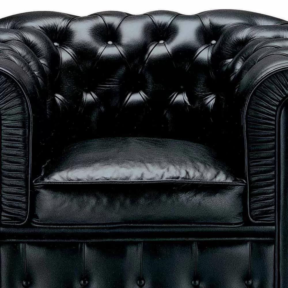 Living room armchair entirely made in Italy with internal wooden structure padded with polyurethane foam and polyester fiber lining, seat cushions in sterilized goose down, leather upholstery (not removable) and lacquered wooden feet. An imposing and elegant furnishing style capable of characterizing the entire living area thanks to its extreme elegance given by the use of leather and the particular quilted texture that covers the entire armchair for an exclusive result . Ideal both for classic style environments in which it fits perfectly creating a wonderful harmony but also for spaces with a contemporary aesthetic in which it gives life to an unprecedented game of contrasts. The materials chosen and used for the realization of this complement also allow to obtain a particularly welcoming and comfortable seat, therefore ideal for spending wonderful moments dedicated to relaxation in your living room.
