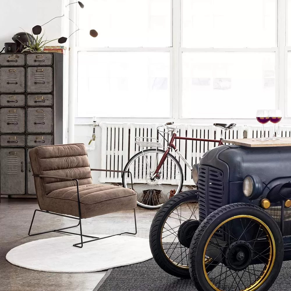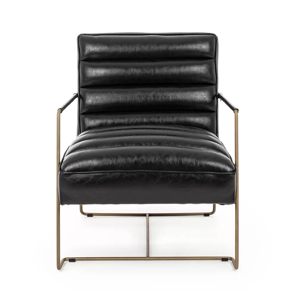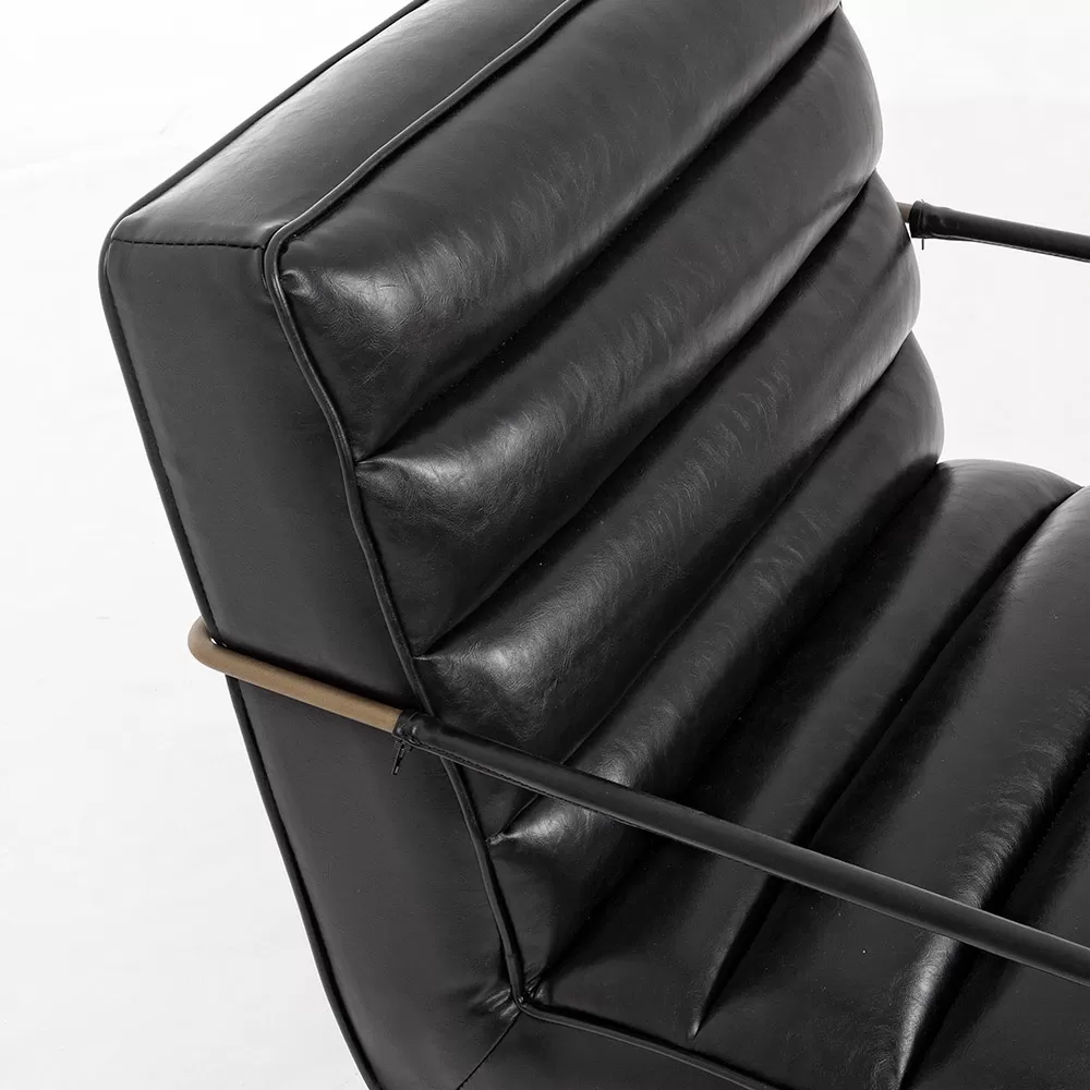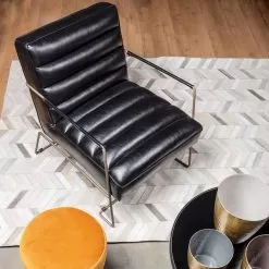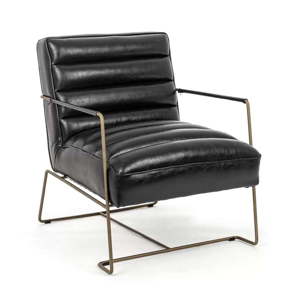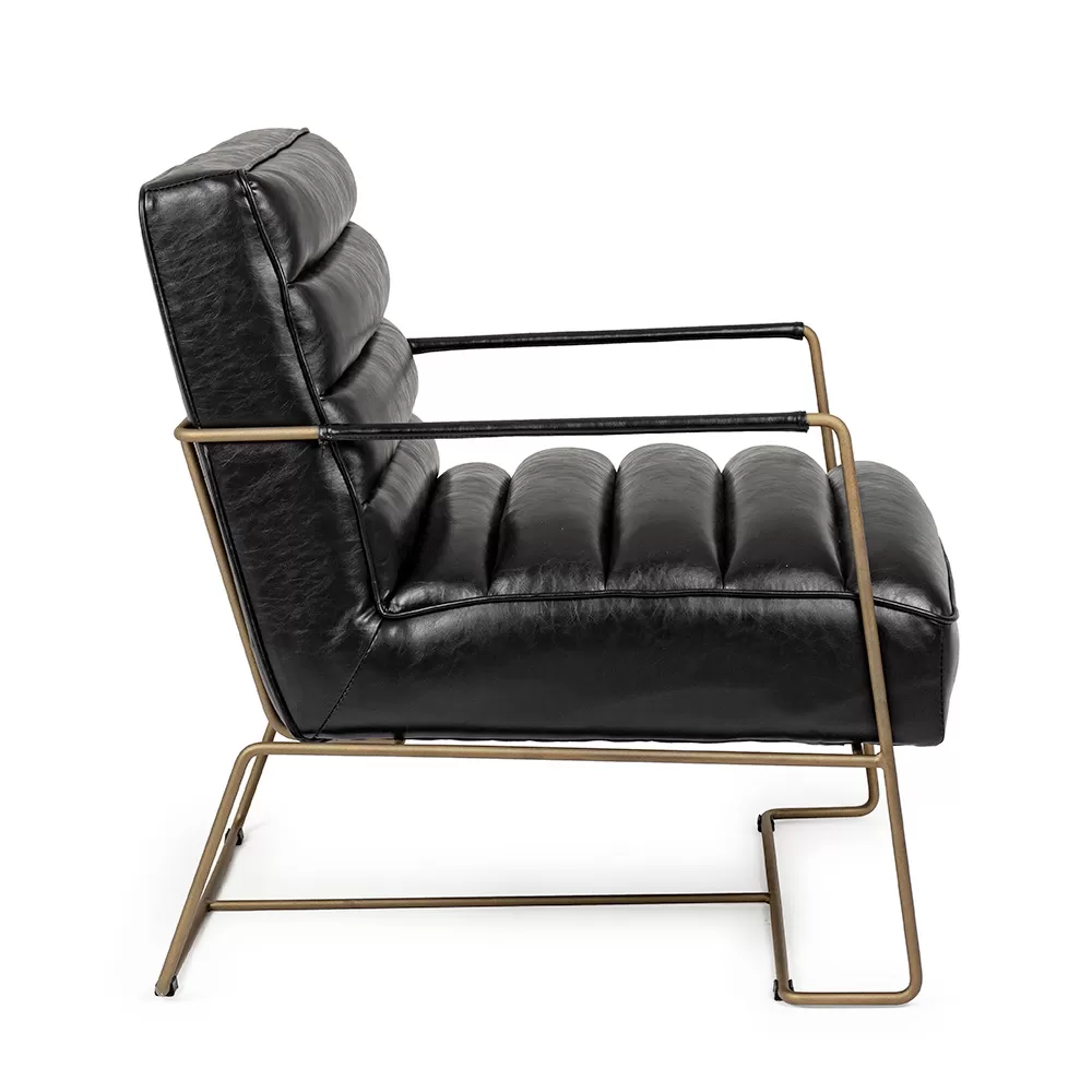 Classic design armchair in steel and seat in black or brown eco-leather.