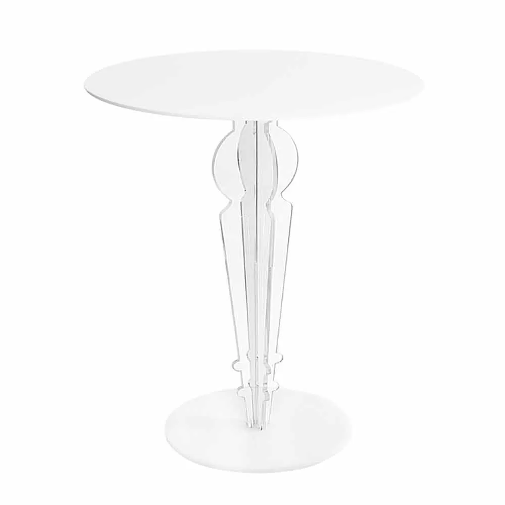The CLES small table is meant to be a reinterpretation of the luxurious small tables of the XVIII century, with a sole centrale leg. It is made with an extremely pure PMMA acrylic crystal, with transparent leg and surface in full-white colour.
