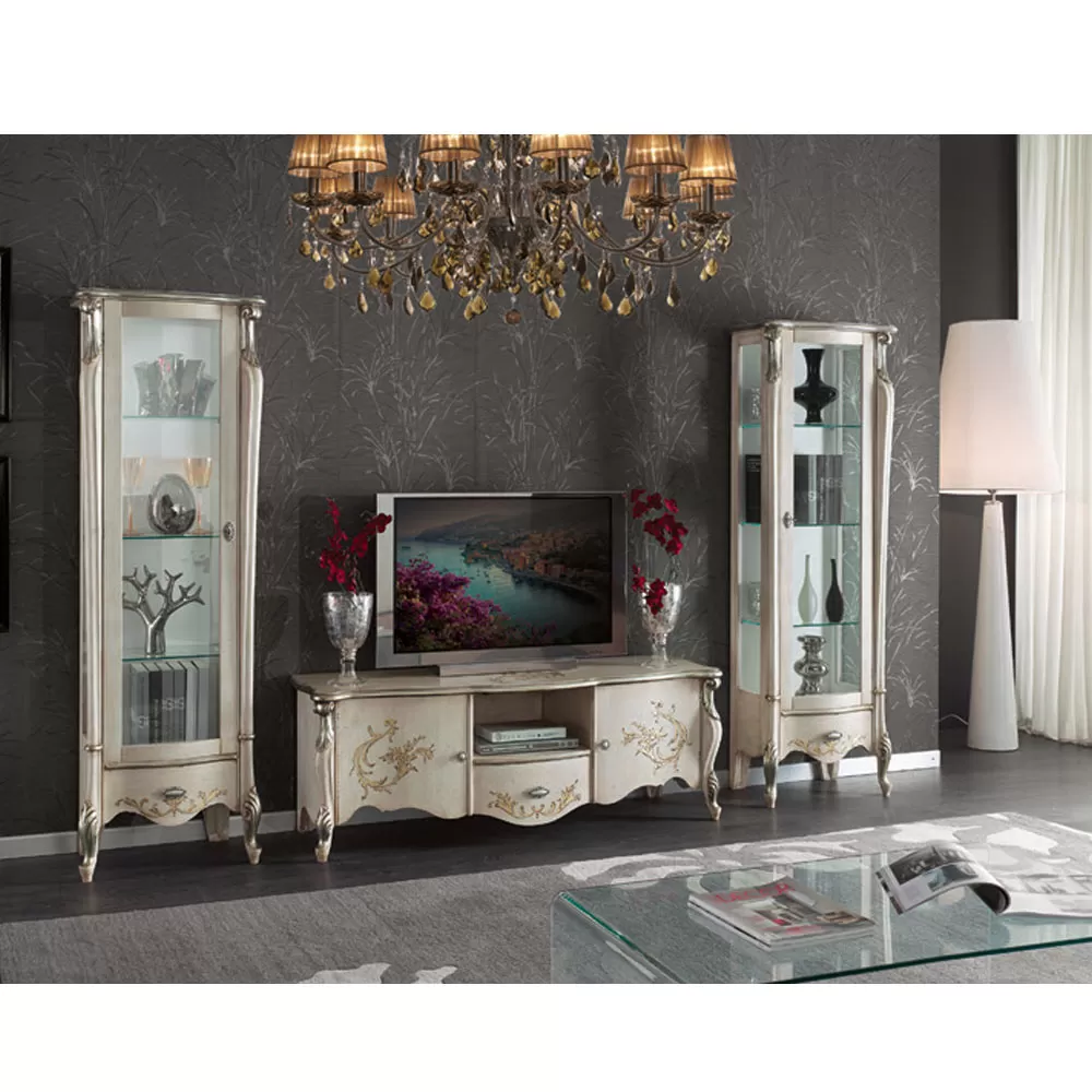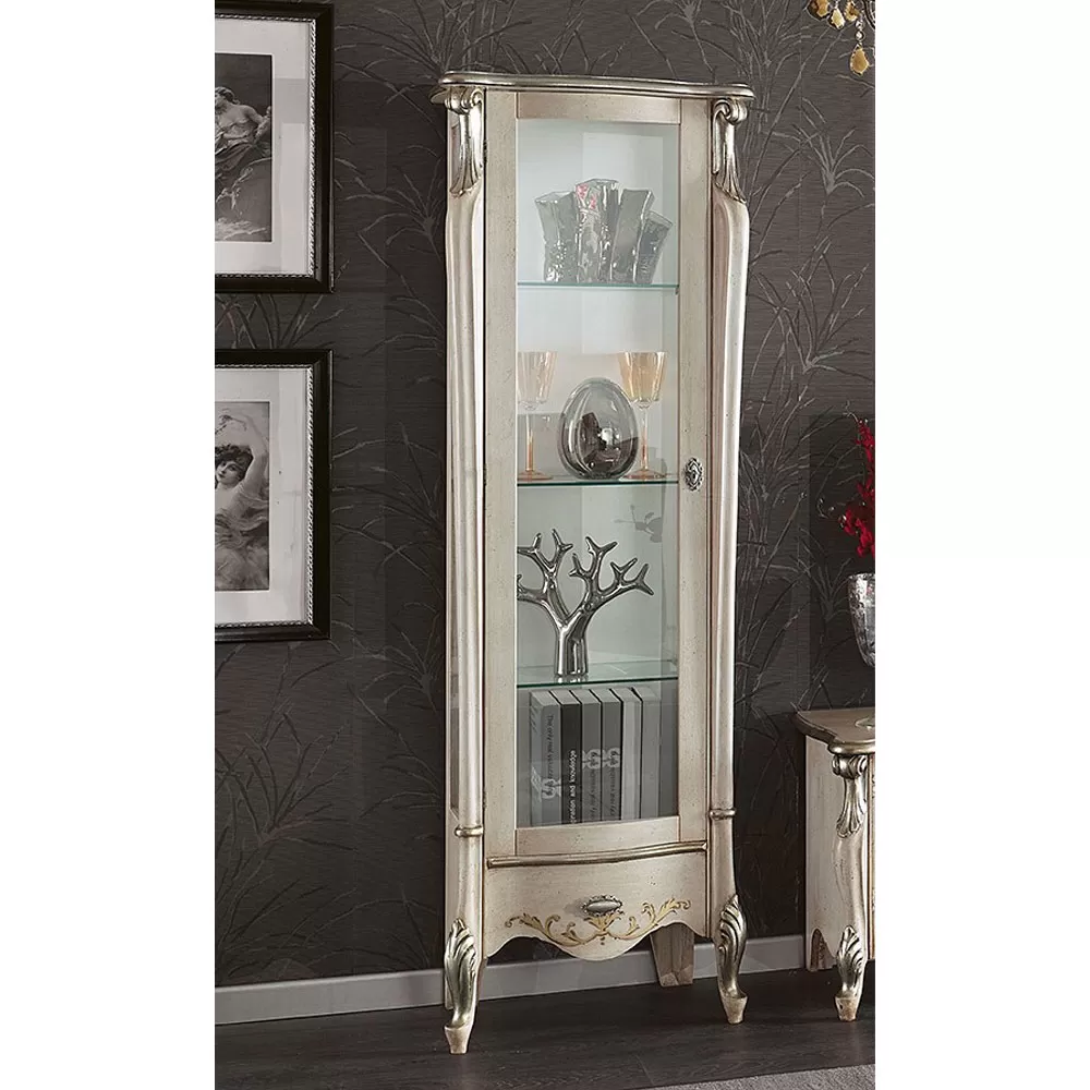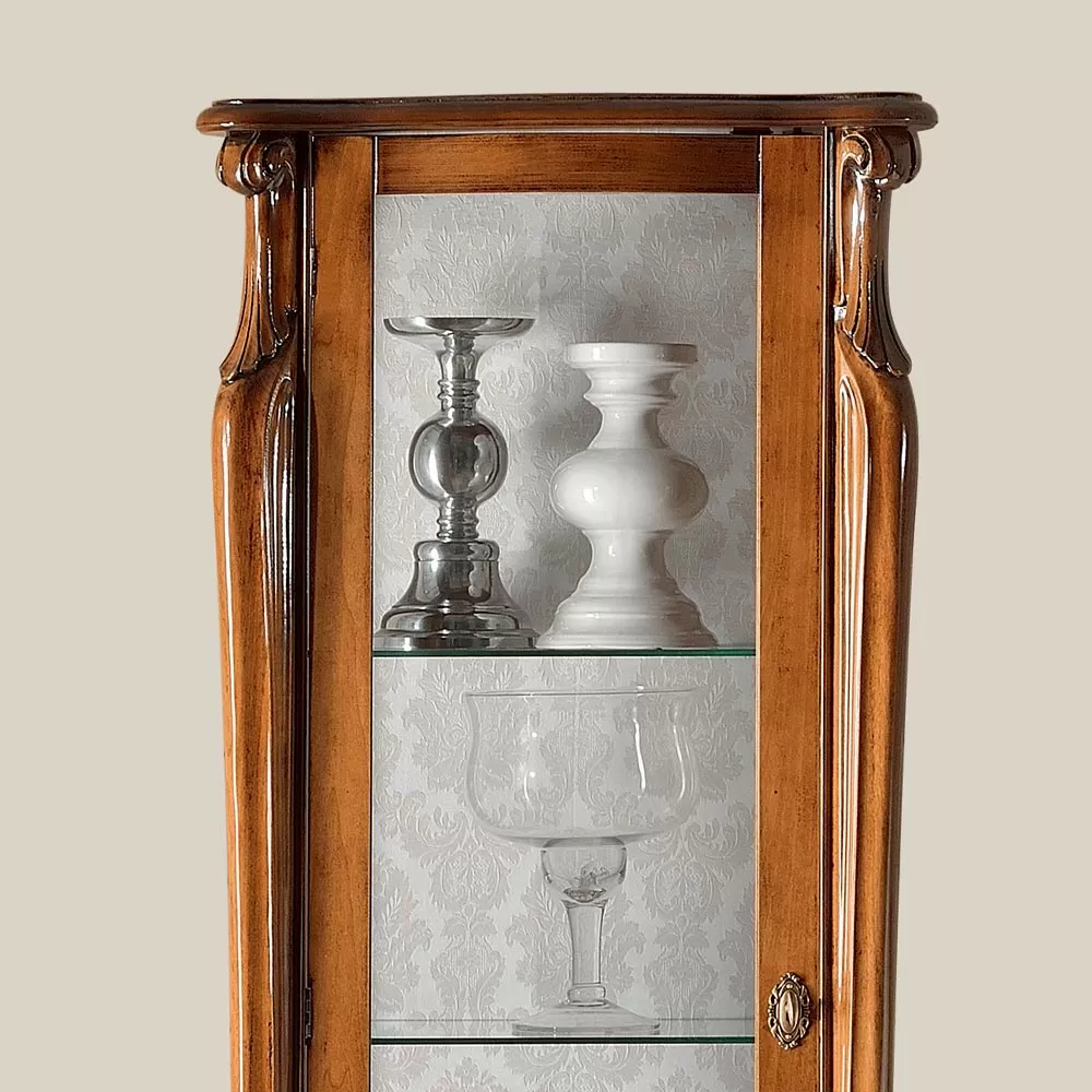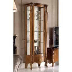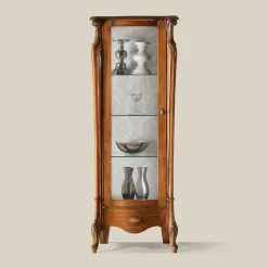 This classic style showcase is perfect for decorating a living room with style and elegance. It is made of wood in Bassano walnut or antique white finishes, and has a door and a practical drawer. It is also possible to choose between the version with the door that can be opened to the right or to the left. Â A unique and refined complement, completely made in Italy by skilled master craftsmen , masters of art who finish each complement with wisdom and taste for elegance. The production is carried out using fine materials , and performing the work by hand with the utmost care and professionalism that distinguishes Made in Italy products.