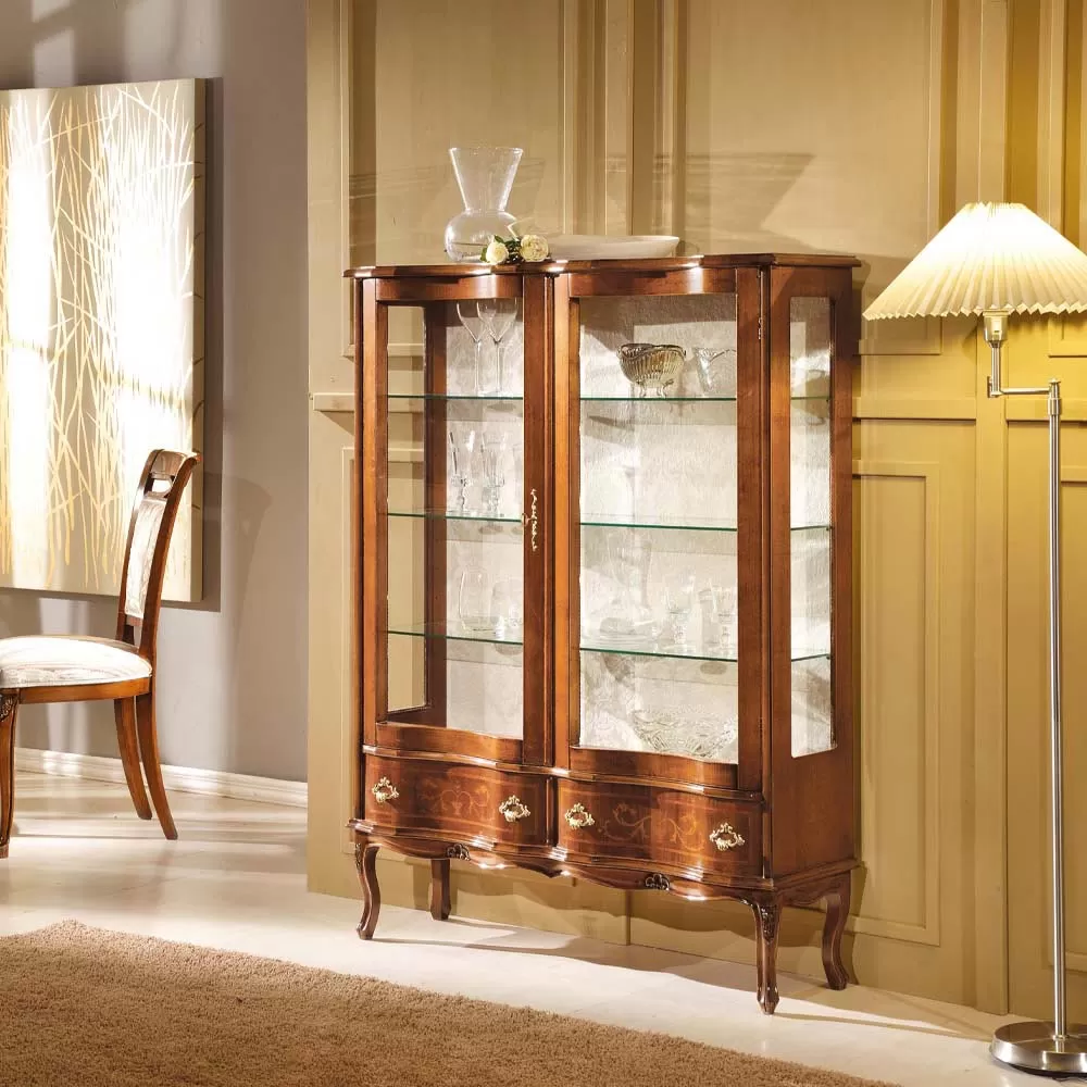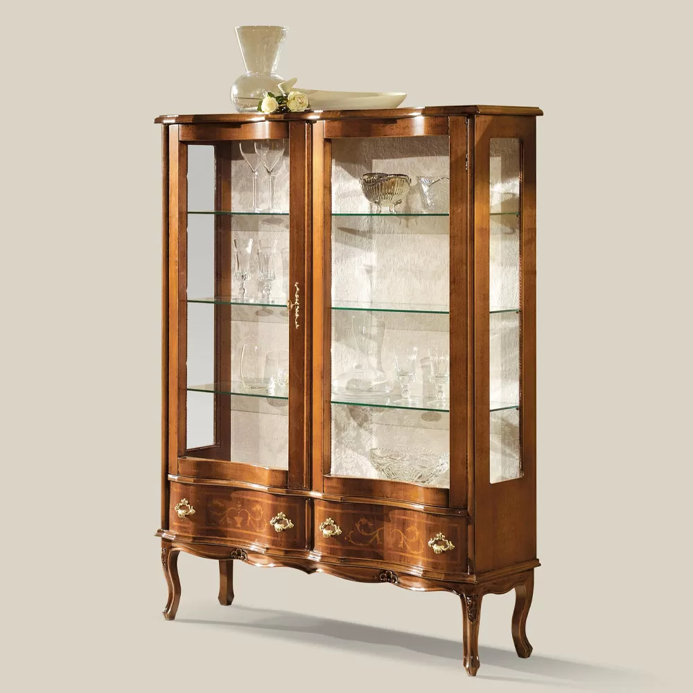 Classic style wooden showcase with doors and drawers Made in Italy.