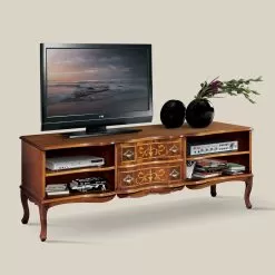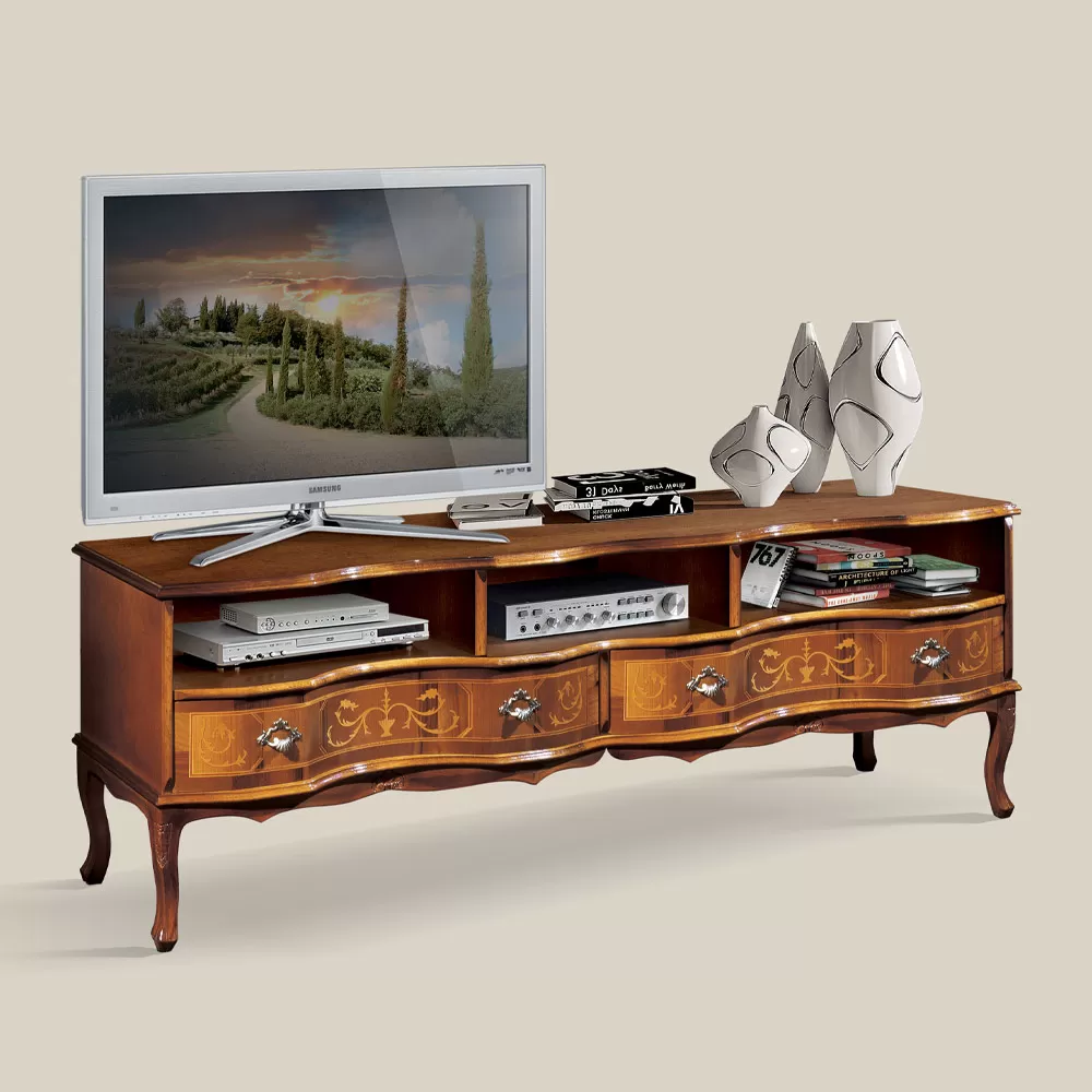 Classic style wooden TV cabinet with compartments and drawers Made in Italy.