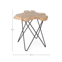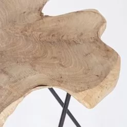 This living room coffee table is made with a floor made of teak roots with a natural finish And  legs in epoxy powder coated steel.