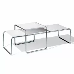 Coffee table with laminate top and chromed finish steel structure. Made through a 100% Made in Italy production , this accessory offers a furnishing solution with an essential aesthetic capable of adapting to every stylistic situation, enriching and completing the style of any modern living area. Its strong point is represented by its simplicity which allows it to prove to be particularly versatile and eclectic . The finishes and sizes proposed are an ideal choice also used together, thus creating original plays of shapes, sizes and finishes for a sophisticated and avant-garde result.
