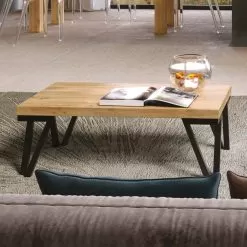 Modern coffee table in oak wood and metal legs Made in Italy.