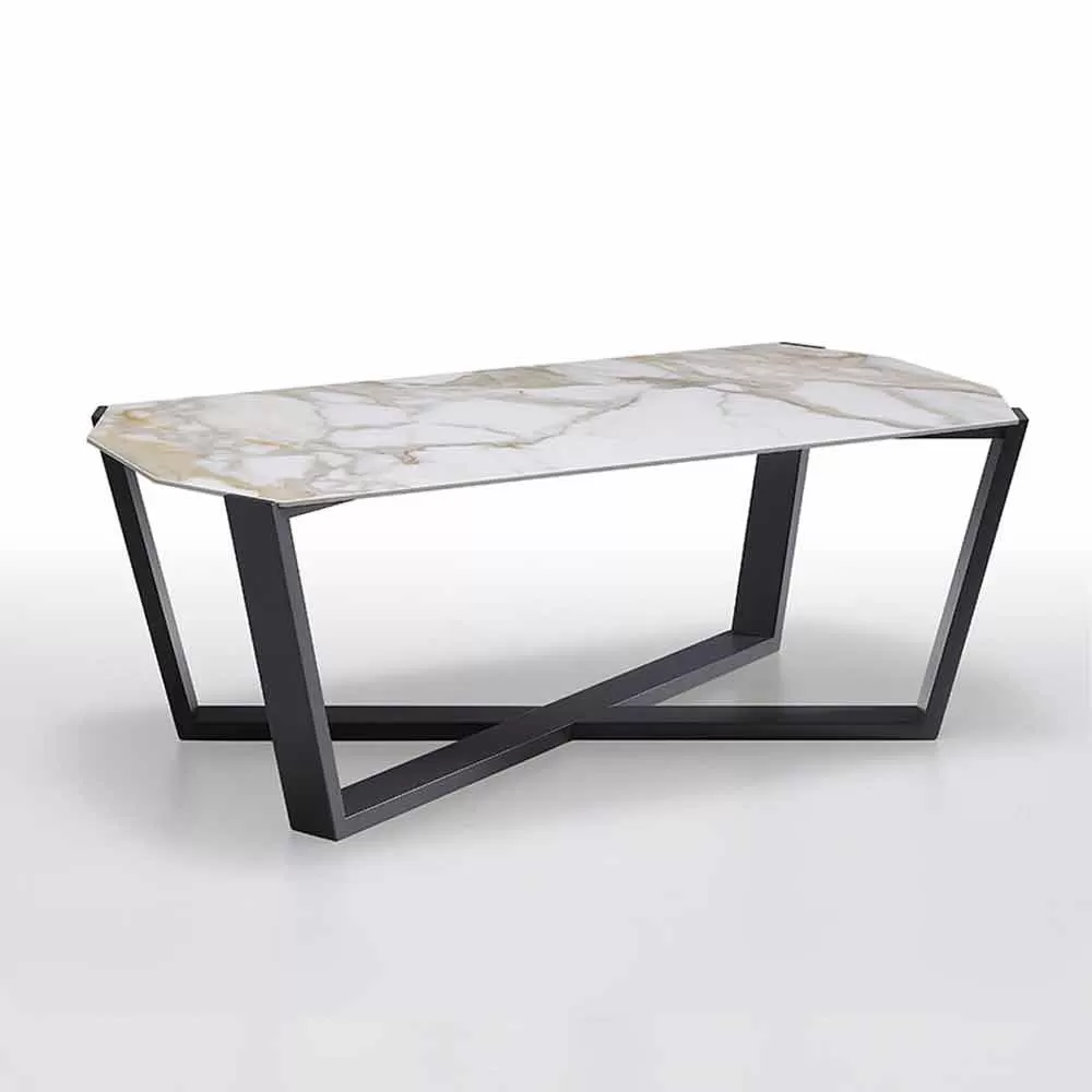 Modern coffee table in beech wood with marble effect stoneware top, high quality Made in Italy.