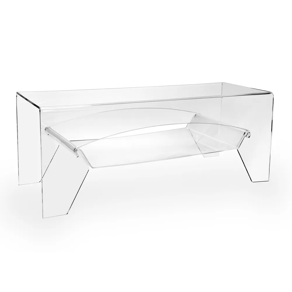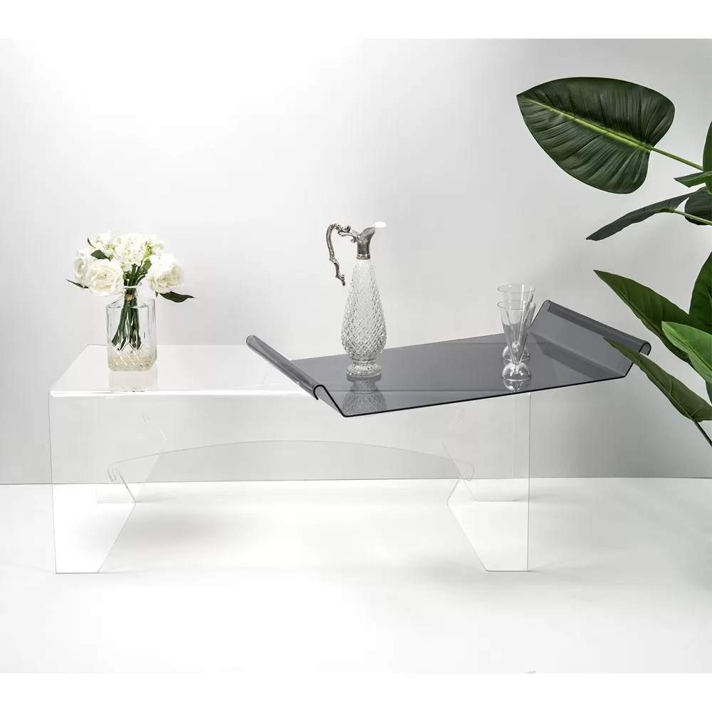 Low living room coffee table in transparent plexiglass or with smoked tray of modern design made in Italy.