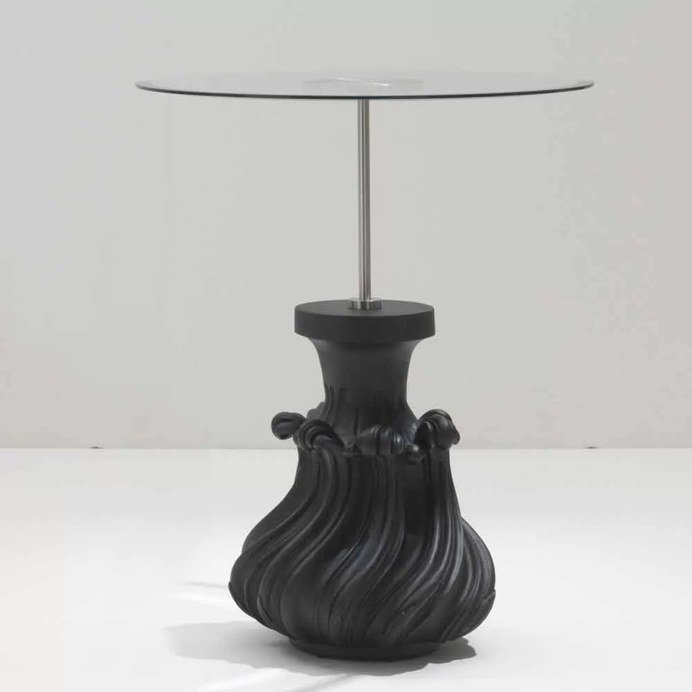 Cocktail table with solid wood base carved by hand. Top in cut crystal with 20 mm electro-welded steel plate. Finish available in sandblasted black Charcoal.