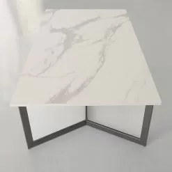Refined coffee table made in Italy with graphite finish painted metal structure and Calacatta white marble effect hpl top .