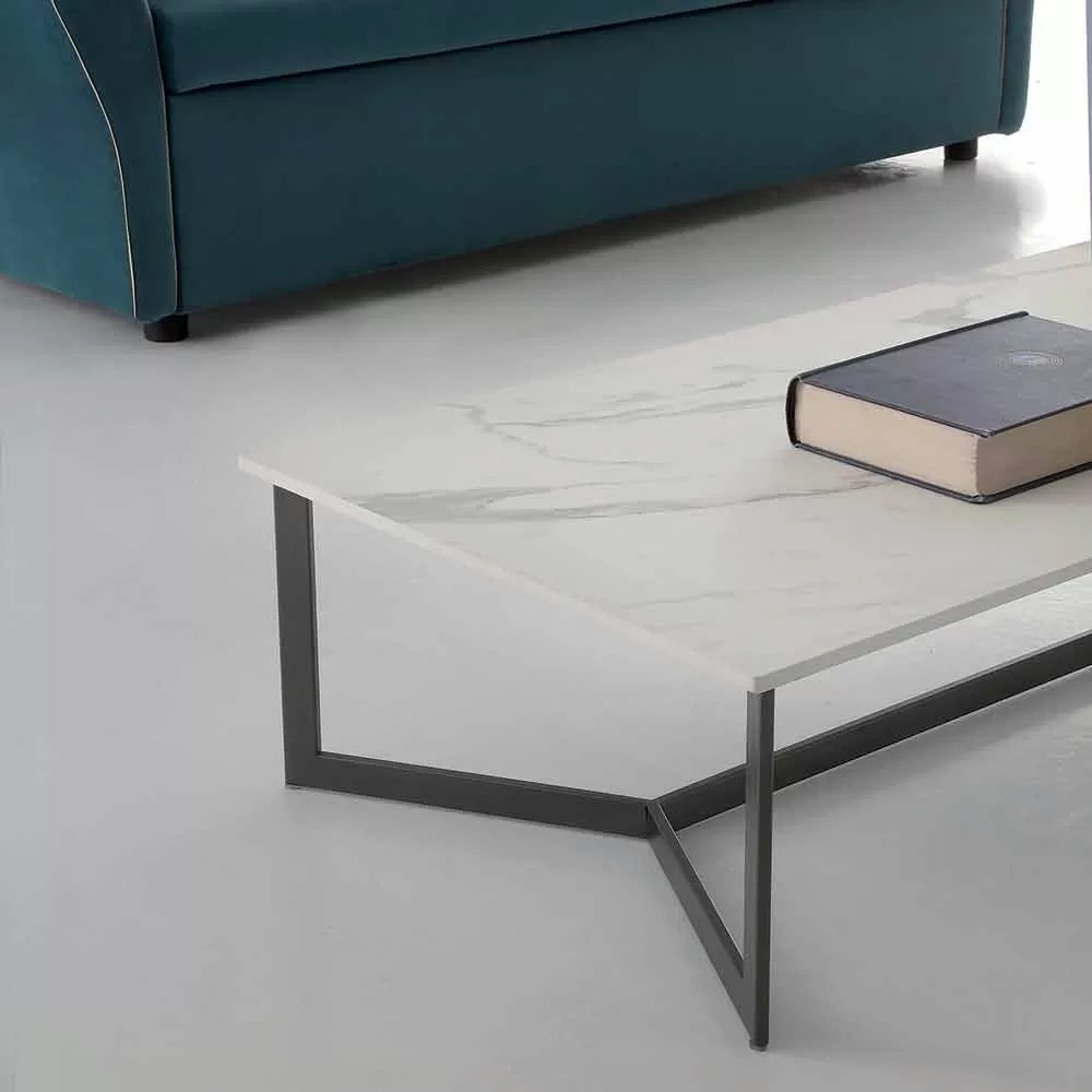 Coffee table in HPL marble effect finish with metal base Made in Italy.