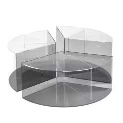 Coffee table made in Italy with round top in bevelled transparent glass and base in mineral marble , a material obtained by mixing marble powders. An exclusive and elegant design characterizes this piece of furniture with a strong refined personality , ideal for furnishing any domestic living space with character, bringing with it an avant-garde touch . Thanks to the use of high quality raw materials and the 100% Made in Italy workmanship, a precious and valuable coffee table is born that stands out for its elegance and creativity in the shapes. The base in mineral marble offers the coffee table excellent solidity and robustness as well as giving the aesthetics its strong modern style. Its particular figure characterized by simple geometric lines creates a wonderful harmony with the soft shape of the glass top, giving the product design an exclusive aesthetic sense.