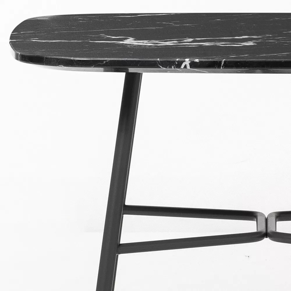 Coffee table with square marble top and painted metal structure , entirely made in Italy . From the perfect combination of the elegance of the finishes and the simplicity of the shapes, a versatile and original furnishing accessory is born, capable of completing in an exclusive and refined way dometic living areas but also lounge areas in hotels and contract environments such as bars and restaurants .