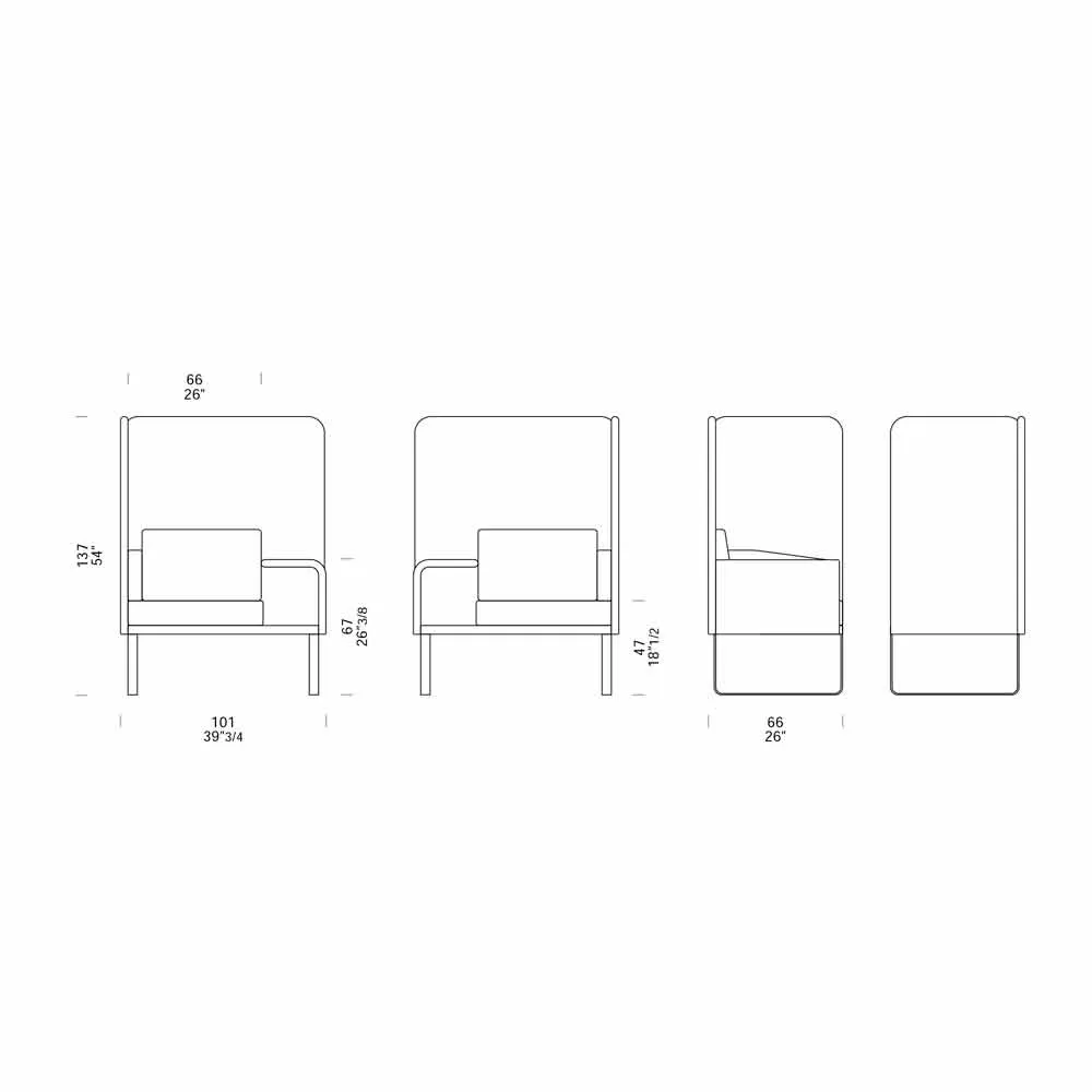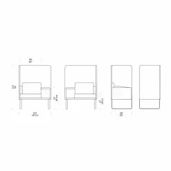 The simple and clean design of this upholstered chair is original and determined, which is characterized by a strong personality capable of creating an intimate and discreet space, allowing a light and pleasant isolation from the context thanks to its sound-absorbing panels.