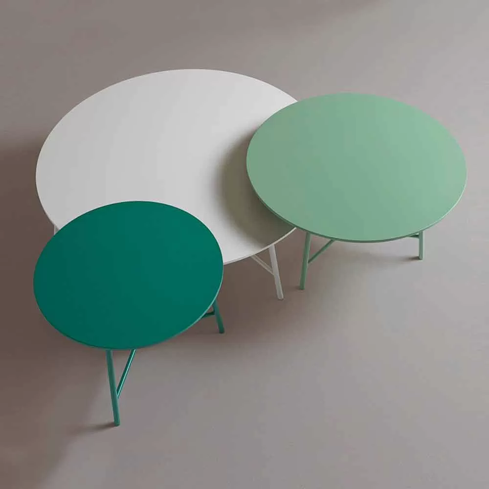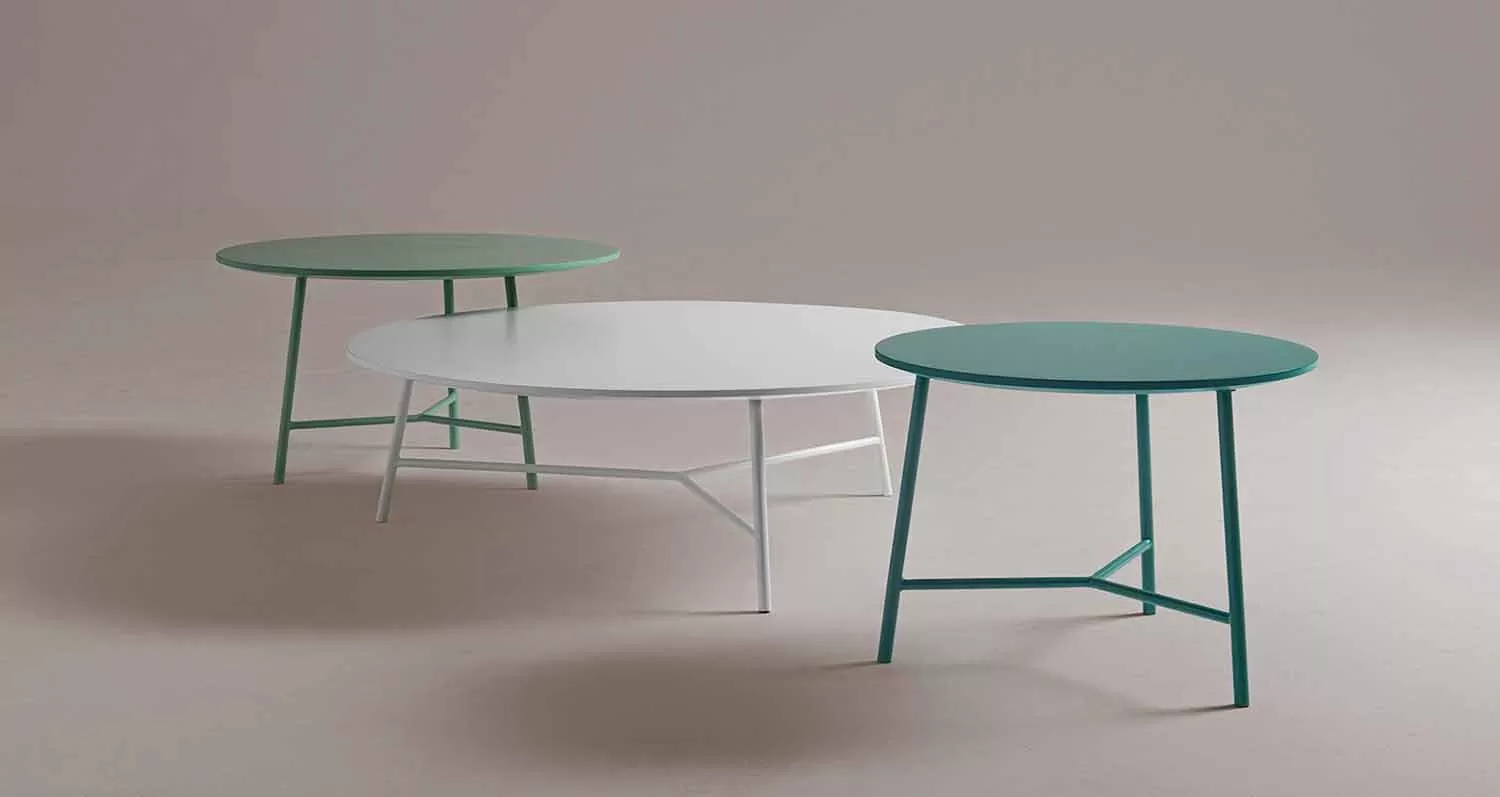 The round top , the light structure and the color palette available give rhythm, harmony and balance to the contemporary living space.