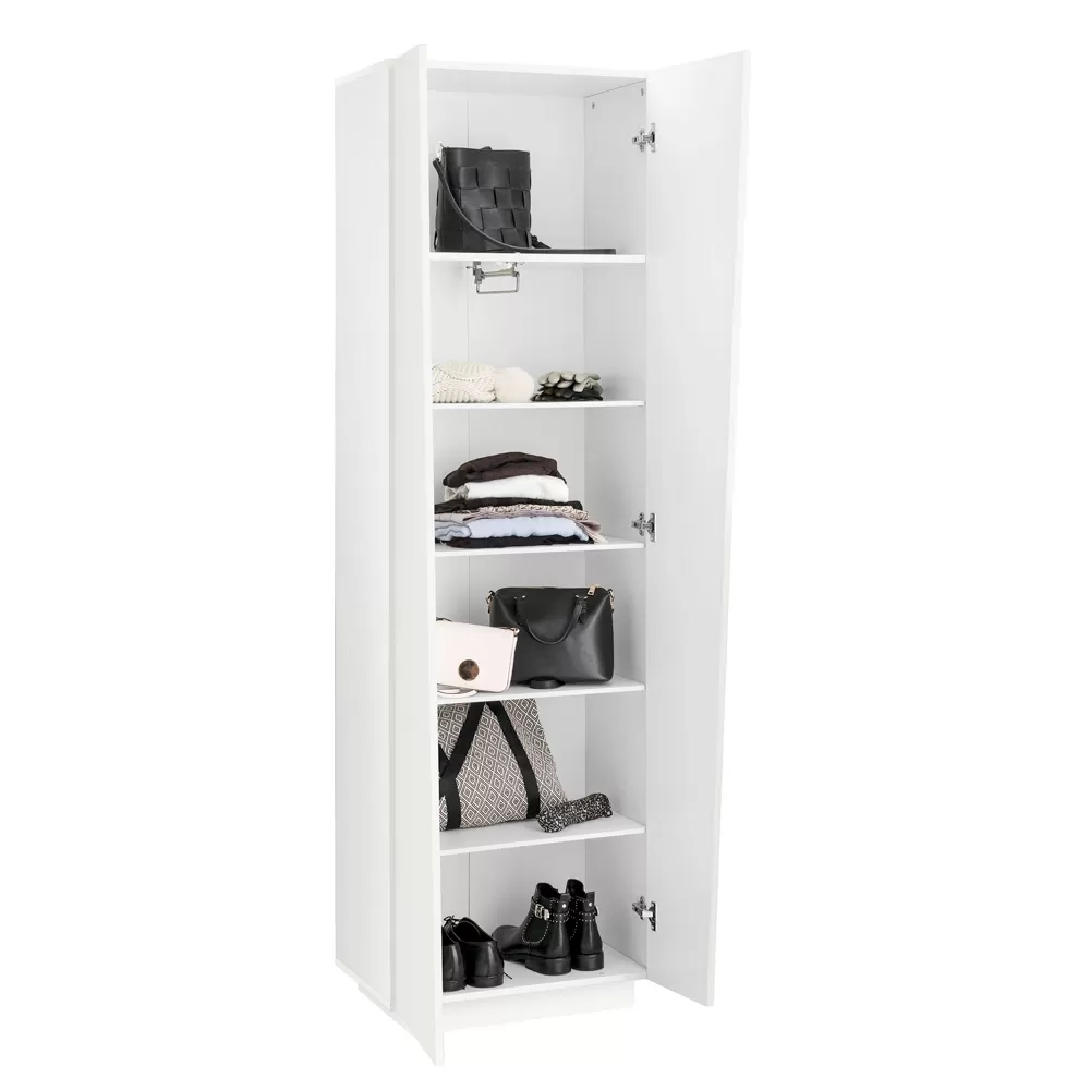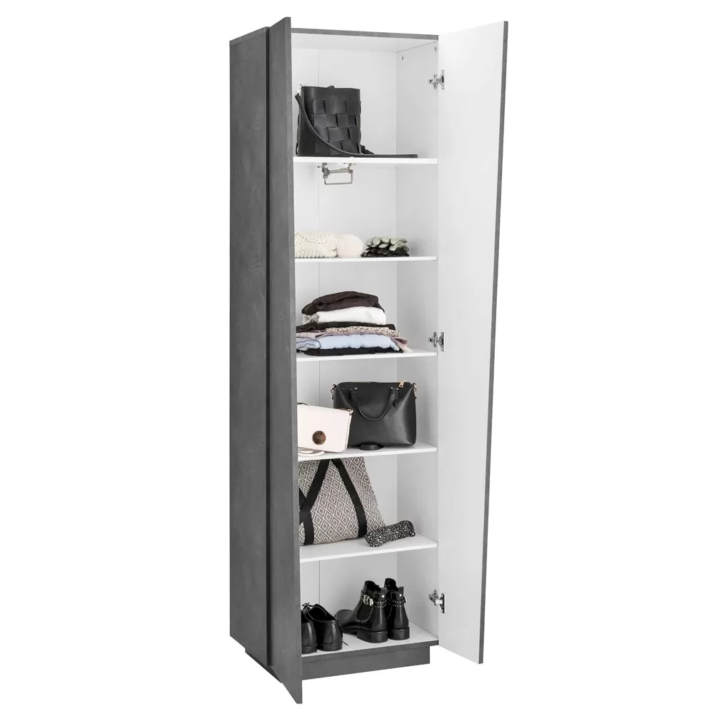 The column storage unit is made up of 2 hinged doors , closing 6 storage compartments , which guarantee large storage space. It is made of melamine and 100% Made in Italy . This product lends itself to completing the decor of any living area thanks to its simple and elegant finishes that give the room a unique and unforgettable touch. The material used guarantees quality and resistance even over time.