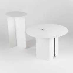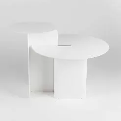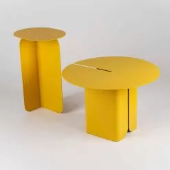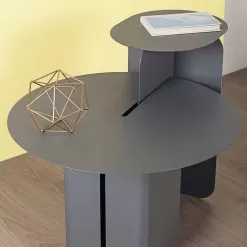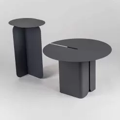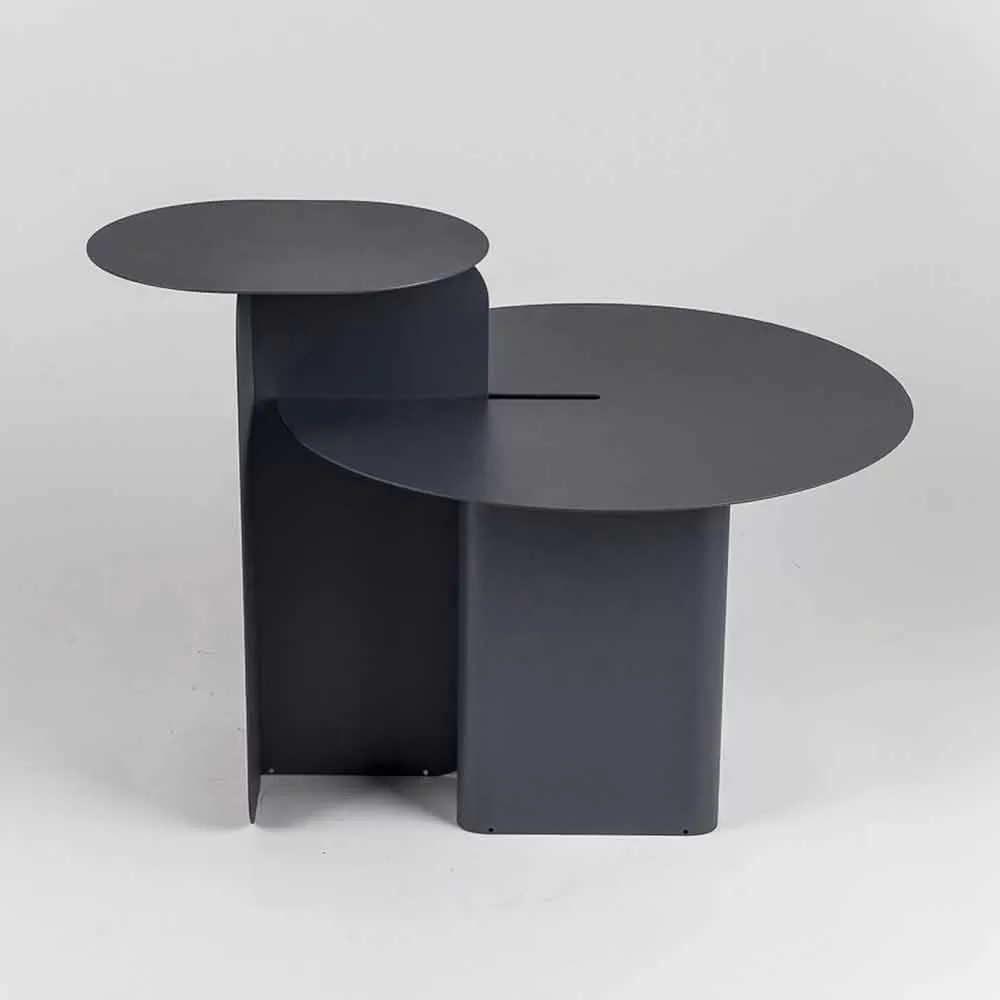 The coffee table represents the fundamental element in any living area as it captures all attention. Precisely for this reason it must be carefully chosen taking into account the available spaces and the surrounding style of furniture. This composition allows you to obtain 3 products in one because, in addition to the two single tables, it offers the possibility of combining them thanks to simple cuts in the top, thus creating a third table with an innovative and refined design, ideal for decorating environments with a contemporary and single. Both products are made in Italy in RAL painted steel and have a structure with soft and simple lines but at the same time robust and solid.