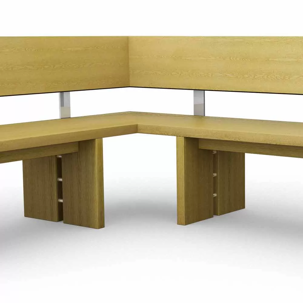 The corner bench Candy presents a young design and aesthetic, which knows how to amaze through the details. The steel, with the tubular inserts of the characteristic legs, and with the 10 mm thick plate that joins back and seat, becomes the protagonist along with the oak wood. The addition of the padding and the slight inclination of the backrest make the use of this furniture even more pleasant, which can be combined with the Nelso table.