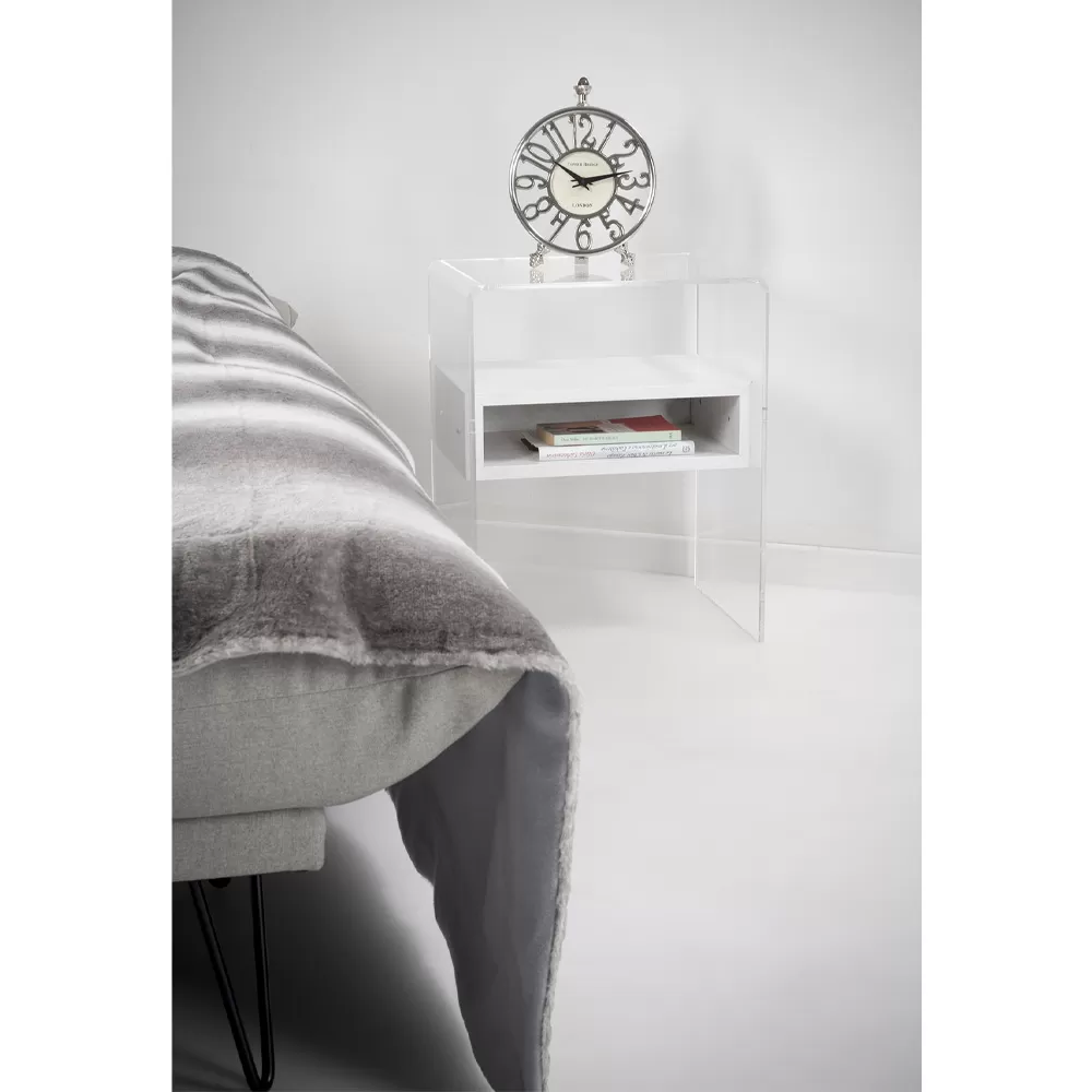 Bedside table or coffee table in transparent plexiglass and wood essences made in Italy.