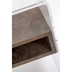 The transparencies and essential lines that distinguish it, determine a practical and modern design enriched by a comfortable shelf in ennobled wood essence.