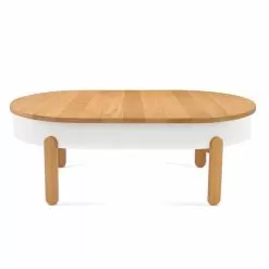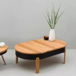 This coffee table is characterized by an extremely functional and modern design, ideal for environments that need a touch of personality. Its simple and sinuous lines combined with quality materials and workmanship by skilled craftsmen in the sector allow to obtain a unique final product, perfect for furnishing modern living rooms with a refined style. Composed of solid oak top and legs and a matt lacquered metal structure, the coffee table allows excellent stability and strength as well as resistance over time and is easily cleaned thanks to the use of a simple damp cloth.