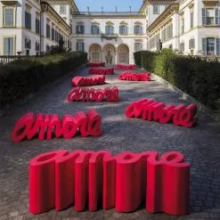Amore is a bench with a strong visual impact that lends itself to indoor and outdoor environments. His philosophy is inspired by that of “lettering” where a word materializes giving shape to a product capable of communicating a message.