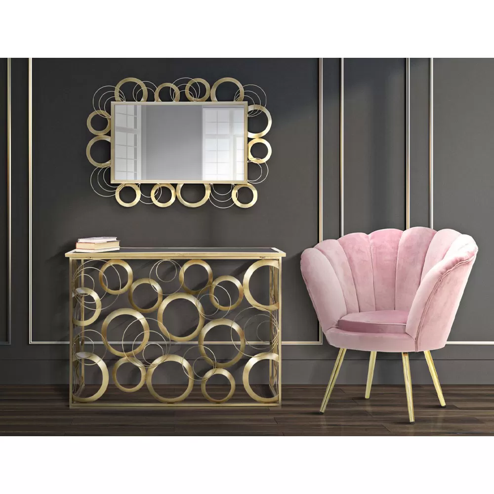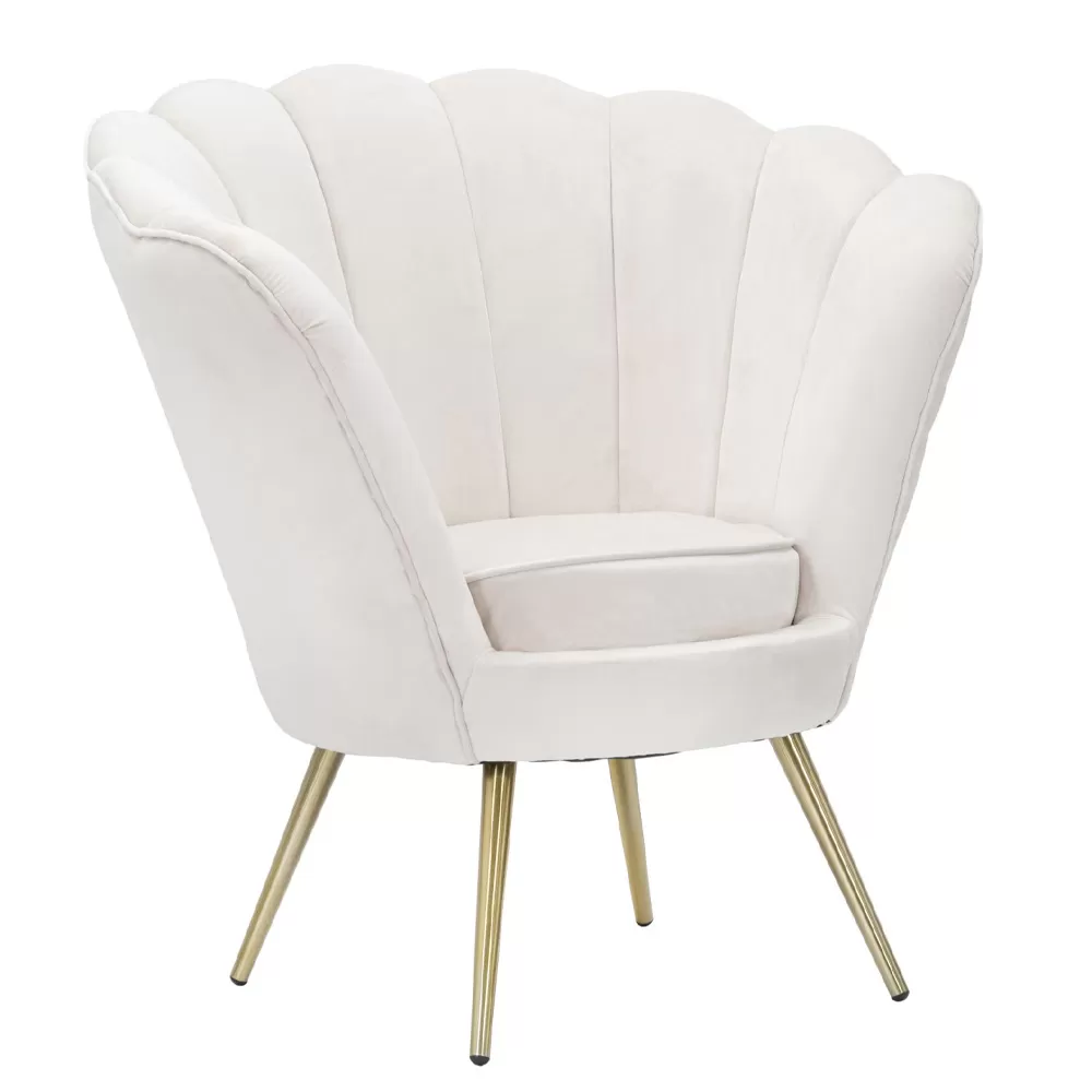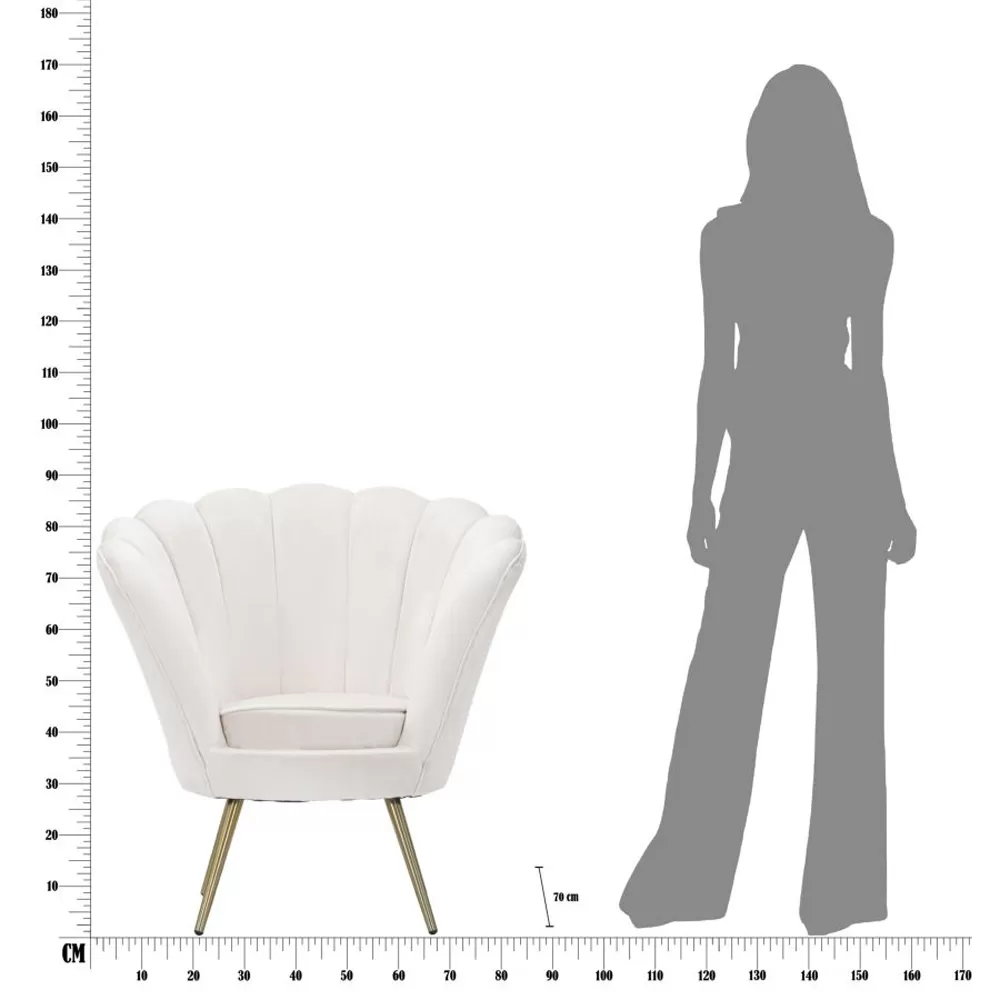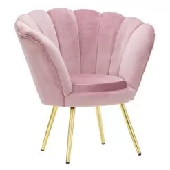 Living room armchair upholstered in velvet with iron base in gold finish.