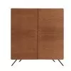 Made in a natural finish, the knobs are in steel and the legs need to be assembled.