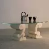 The coffee table is an element that often has small dimensions, but is able to revolutionize the appearance of any environment, therefore it must be chosen with care. Morbello presents a refined, elegant design, thanks to the material used for its realization: the Levanto red marble. It’s a valuable material, also used for the construction of some important works of art and was also used by the ancient Romans. This particular red variety takes its name from the Italian city from which Levanto is extracted. The red background due to hematite is enriched with white veins of calcite, rare clusters of quartz and, sometimes, green areas of serprentine.